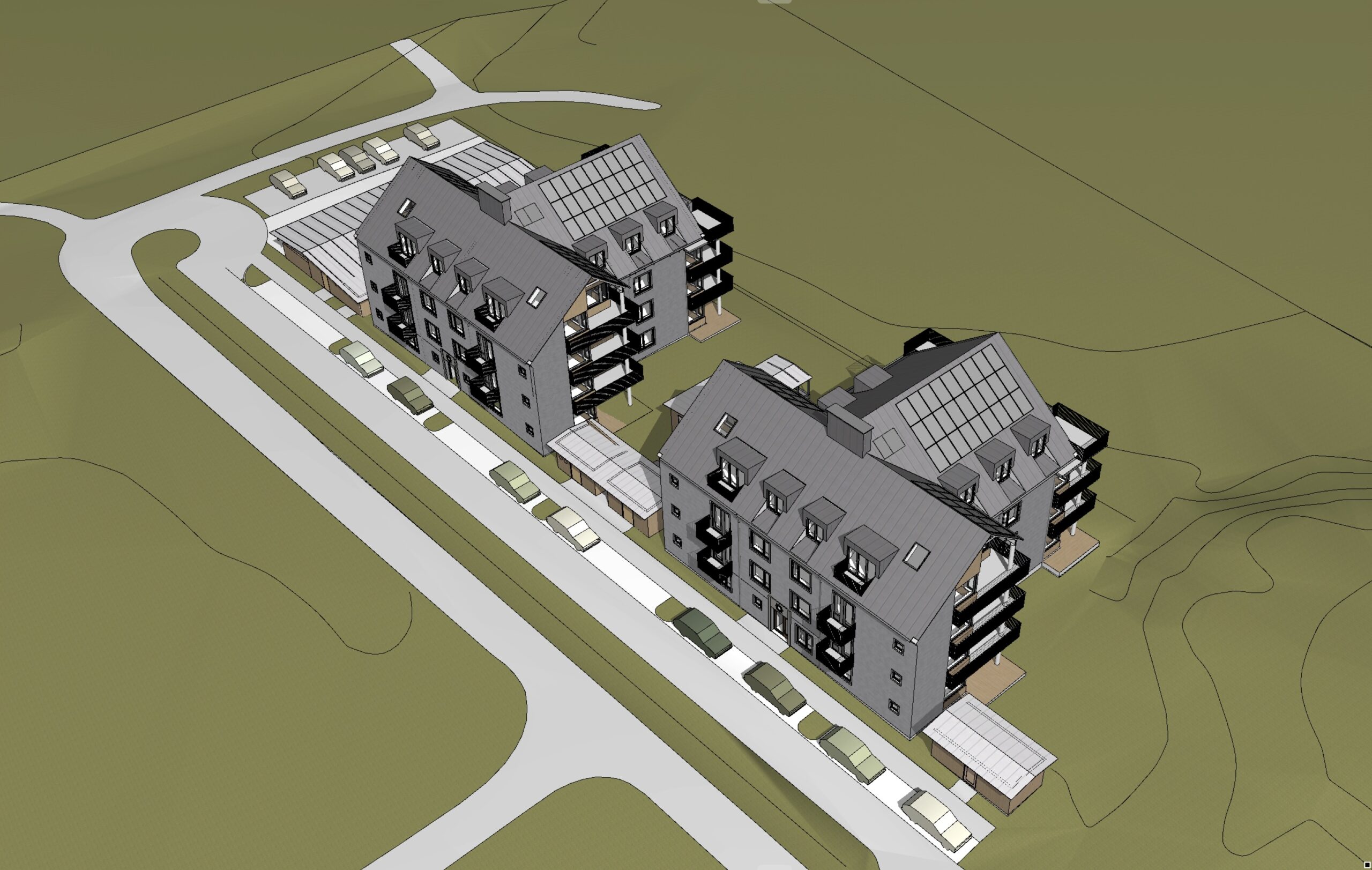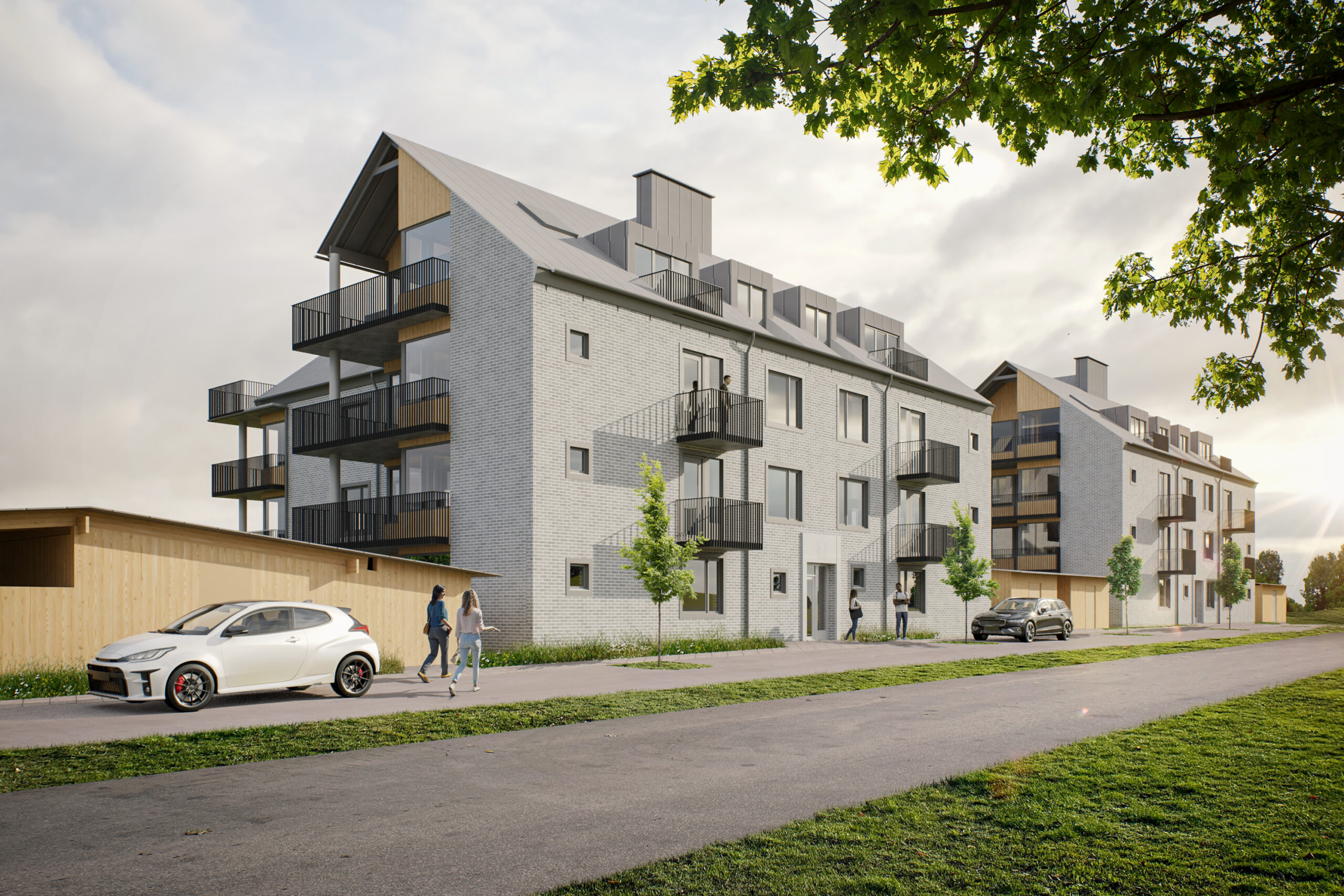 Till varje lägenhet finns möjlighet till egen parkeringsplats eller carport, samtliga förberedda för elbilsladdning – ett framtidssäkrat val.