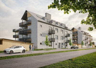 Med Brf Solängen skapar vi ett modernt och genomtänkt boende i Smedby i Åkersberga, utformat för både unga och äldre. Vi ser framför oss att många av de boende är nuvarande villaägare i närområdet – personer som redan uppskattar Smedbys lugna och trygga karaktär och som nu söker ett mer lättskött boende, utan att behöva lämna platsen de trivs i. Vår ambition har varit att ta det bästa från de omtyckta Kanalhusen och vidareutveckla konceptet, med förbättringar som höjer både komfort, kvalitet och hållbarhet.